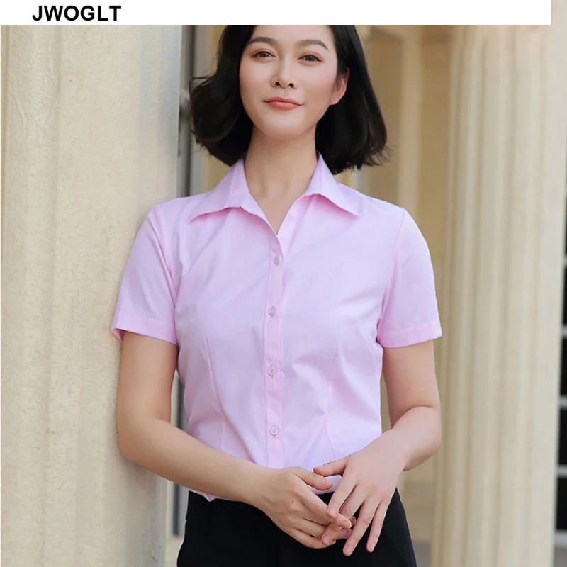Business Casual Slim Fit Short Sleeve light pink women's dress shirt