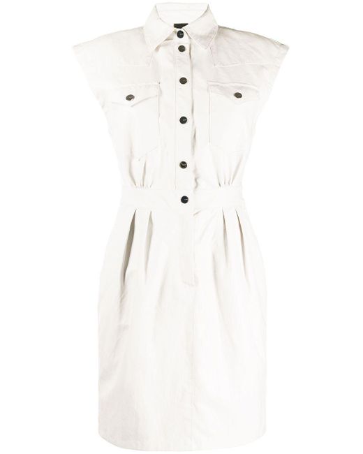 Sleeveless Denim Dress in White white sleeveless button down dress