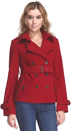 Short Wool Blend Coat With Trench Style women's short red trench coat