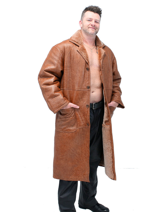 Men's Tan Genuine Sheepskin Fur Lined tan overcoat
