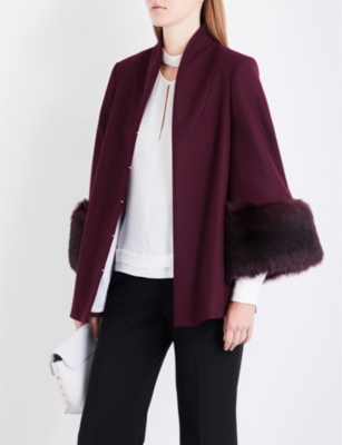 Rilly faux-fur cuffs wool-blend coat ted baker burgundy coat