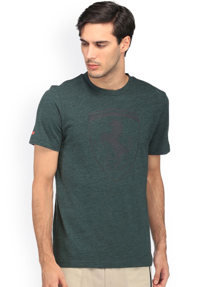 Men Green Printed Round Neck T Shirt puma ferrari men green