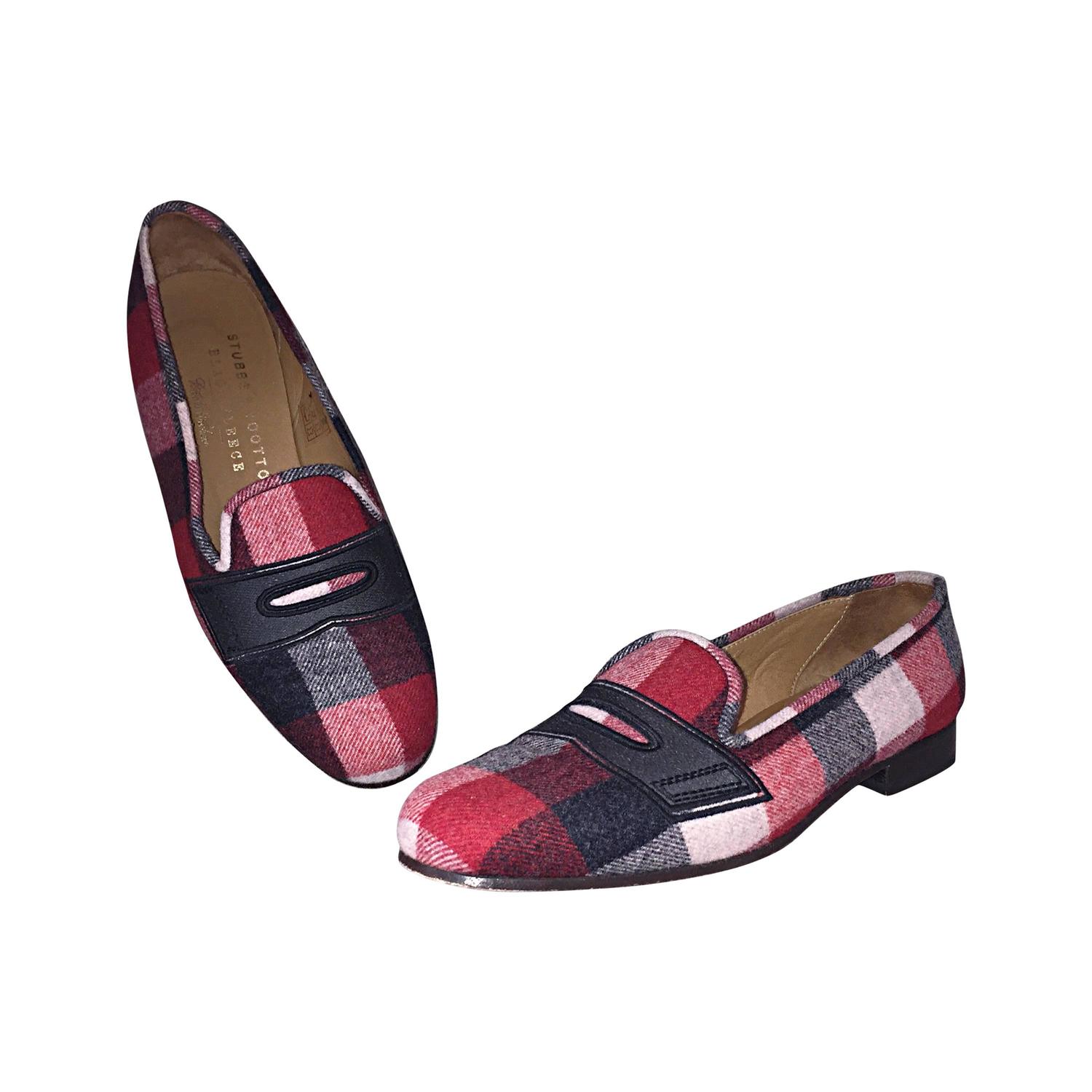 black and red plaid shoes