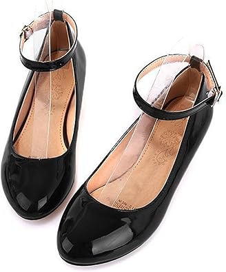 100FIXEO Women Ankle Strap Mary Janes black patent leather flats amazon