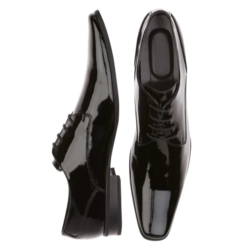 black patent leather tuxedo shoes