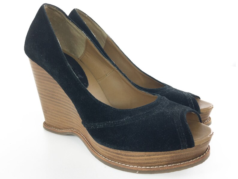 Black Tan Suede Wedges size 8.5 Leather tan suede wedges