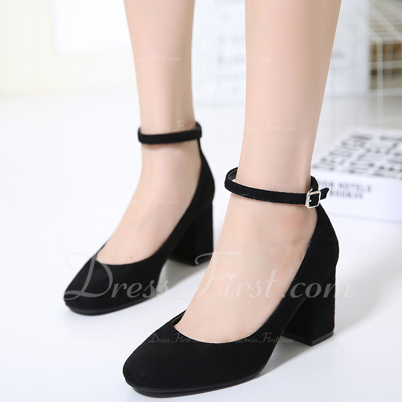 Women's Suede Chunky Heel Pumps Closed chunky closed toe heels