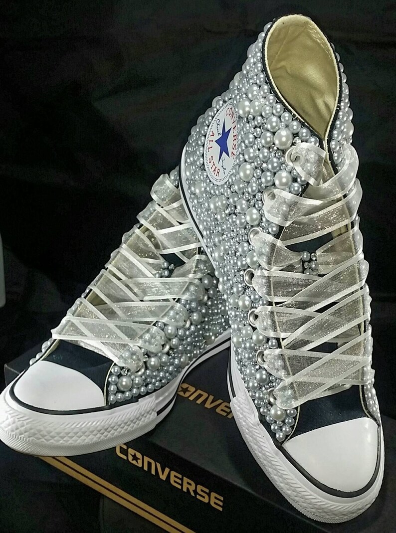 Bling \u0026 Pearls Custom Converse Sneakers bride chuck taylors