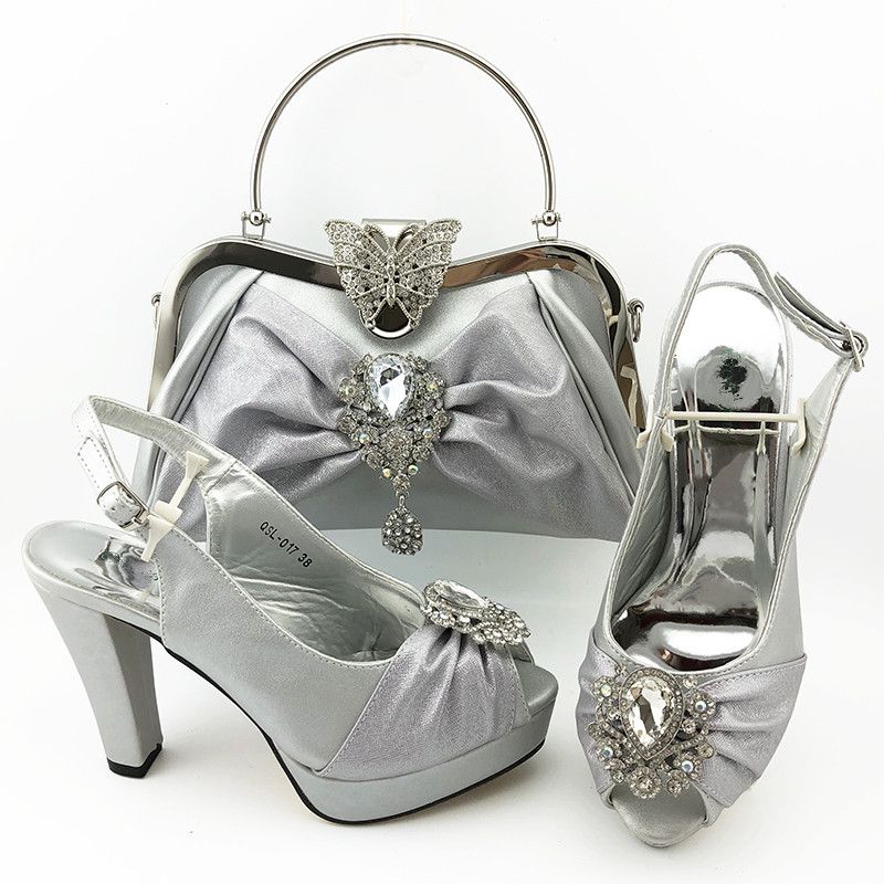 Women Pumps Match Handbag Set cheap silver dress shoes
