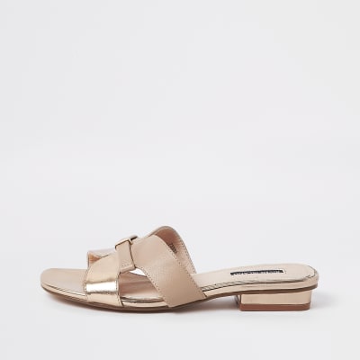 Rose gold faux leather flat mule rose gold heels river island