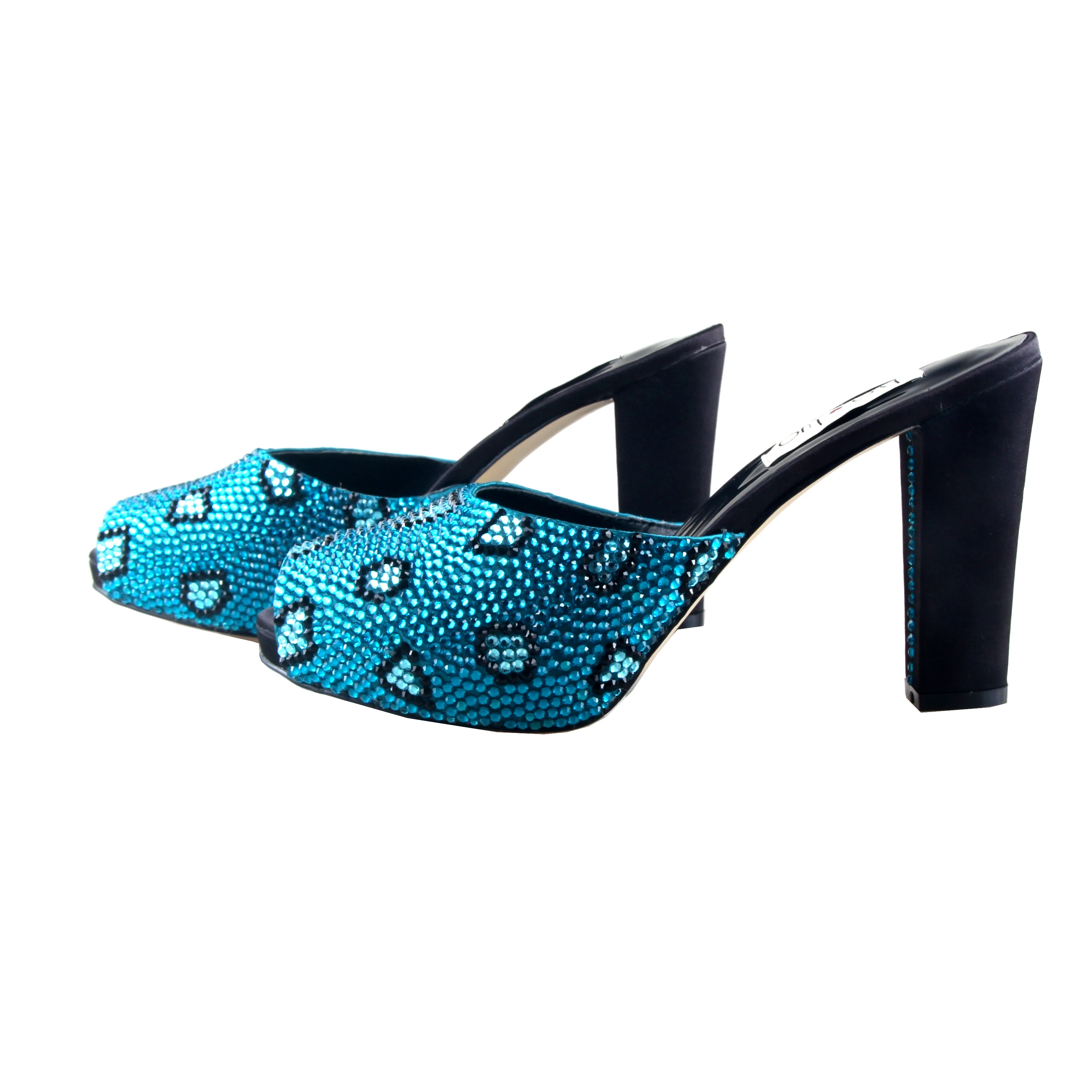 Turquoise Leopard Crystal High Heel turquoise block heel shoes