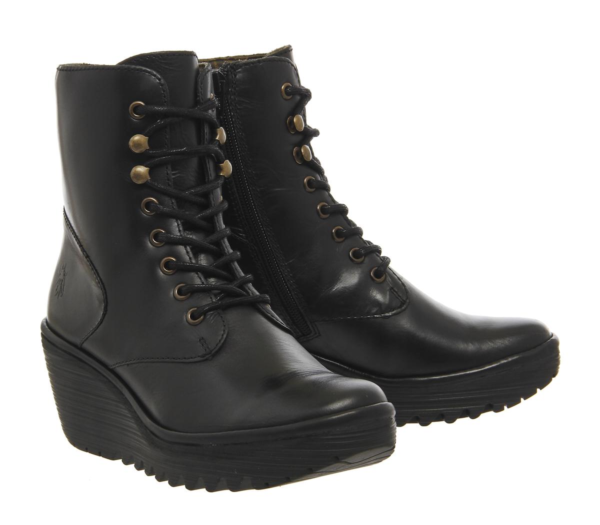 Fly London Ygot Lace Up Wedge Black fly london ygot boots