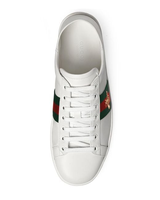 Gucci Leather Bee Web Sneakers in White gucci bee white shoes