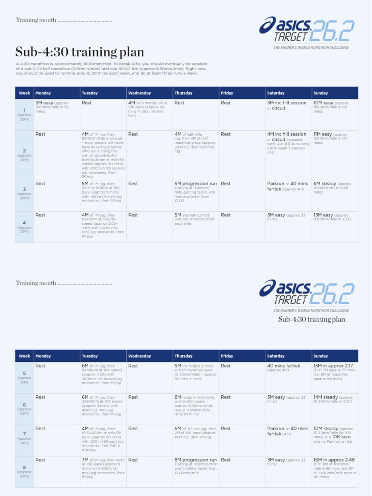 asics trainingplans sub 4.30.pdf | Auto asics half marathon training