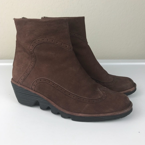 Burgundy Wingtip Wedge Ankle Boots fly london burgundy boots